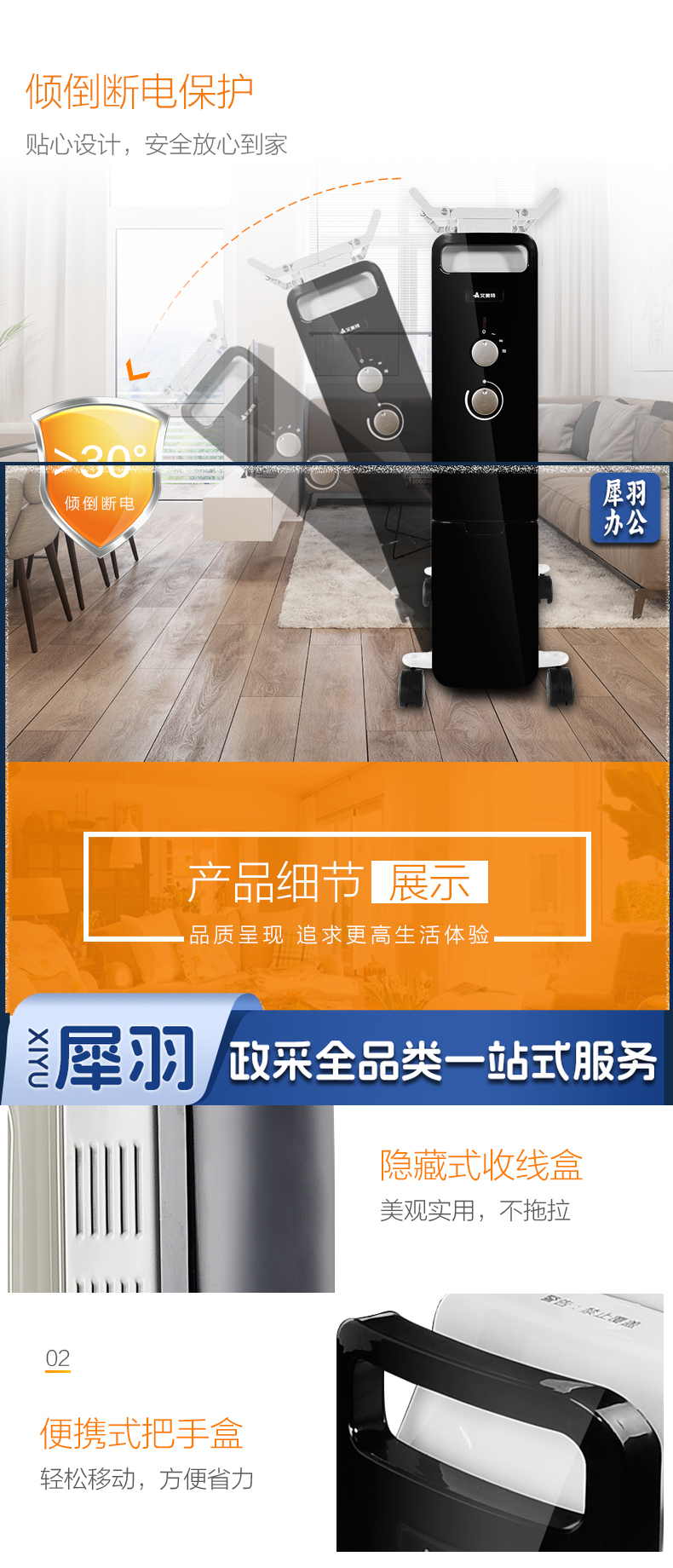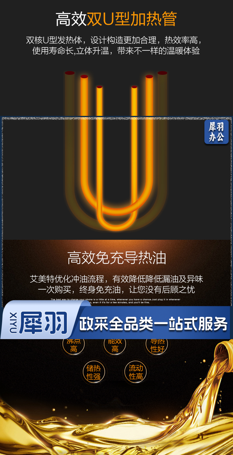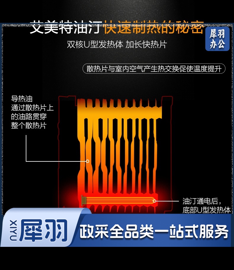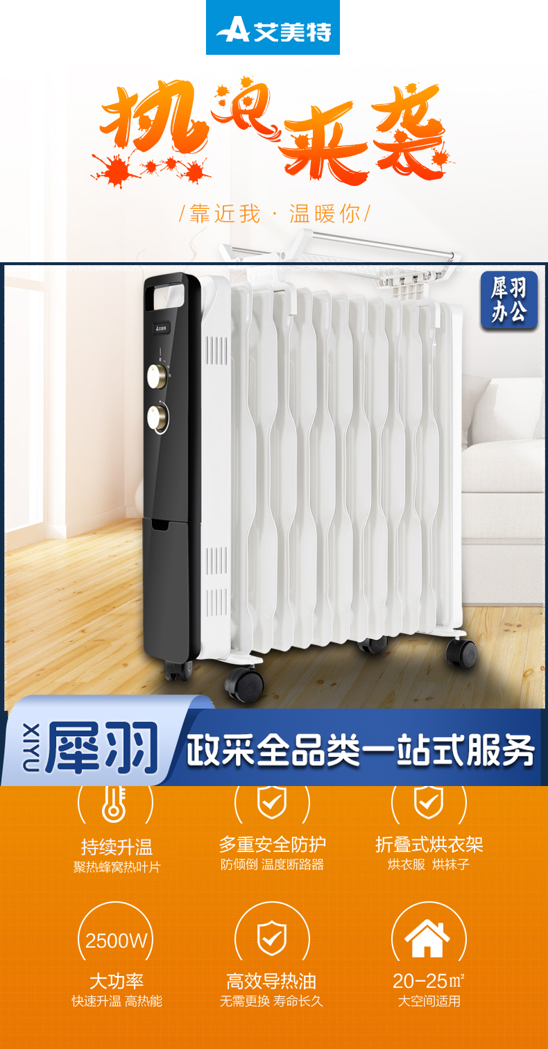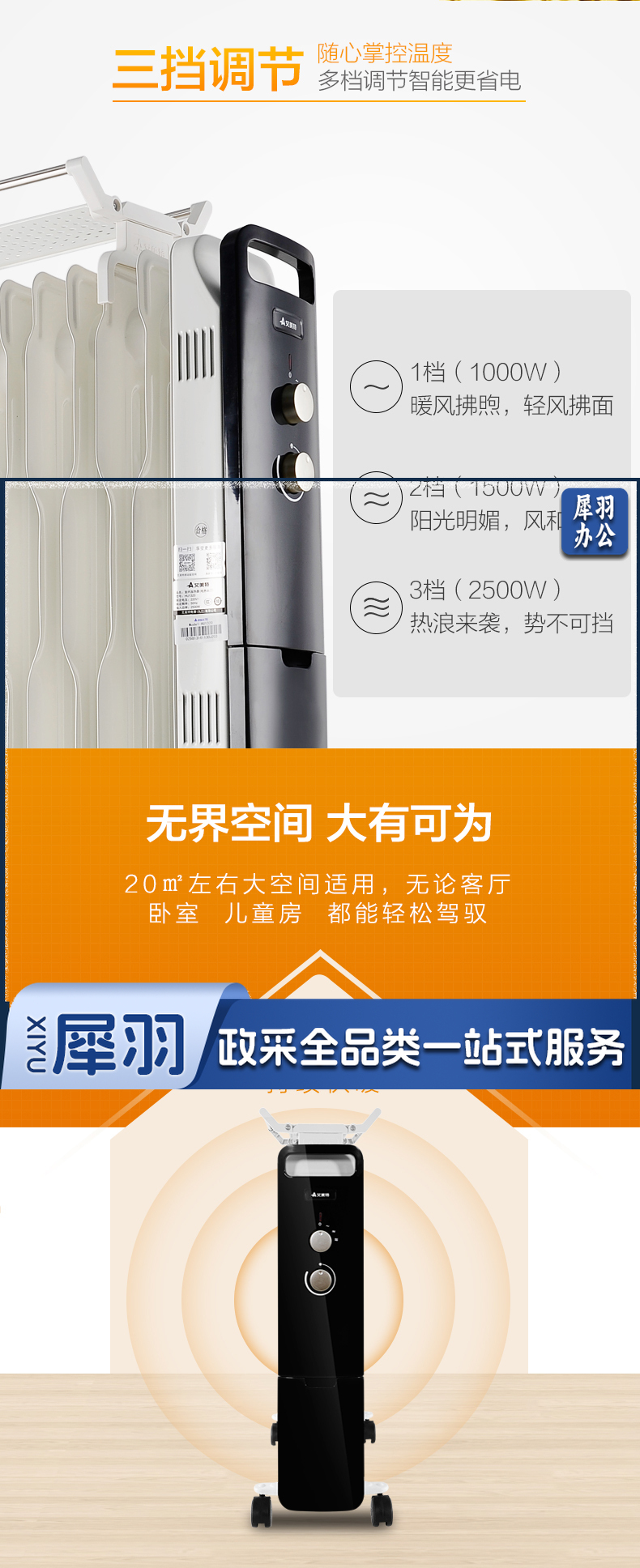 艾美特 13片 电暖气油汀取暖器 三档调温办公室节能省电取暖器 HU1320