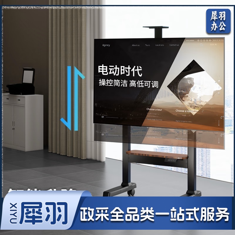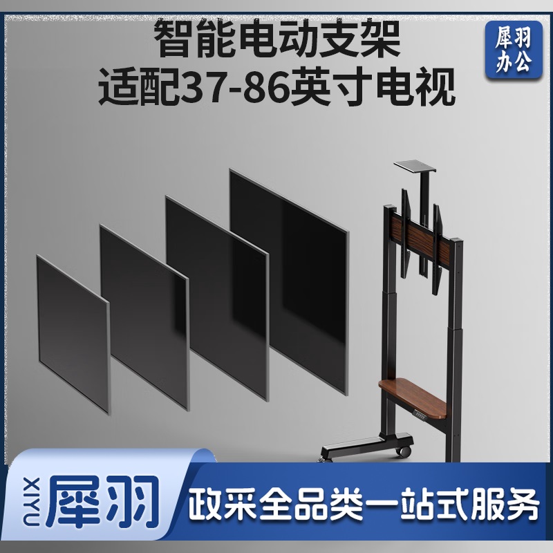电视移动支架32-86英寸通用电动升降电视机落地支架可移动不锈钢/木纹带轮电视挂架电视