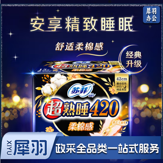 苏菲超熟睡柔棉感卫生巾230+350+420mm 22片加大尾扇量多防渗漏姨妈巾