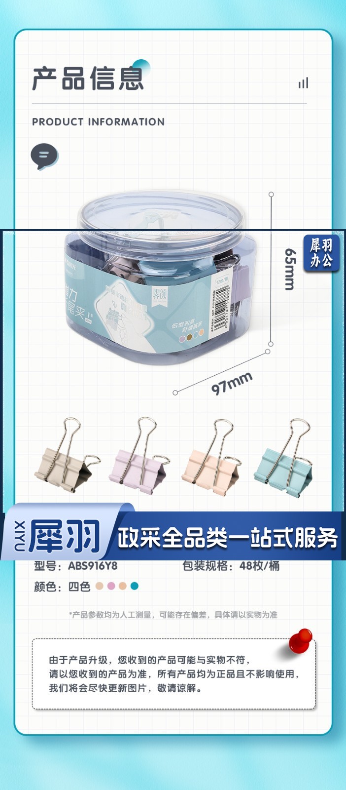 晨光(M&G)文具48只25mm 省力长尾夹票夹 4#彩色金属燕尾夹 莫兰迪系列票据夹子 办公用品ABS916Y8