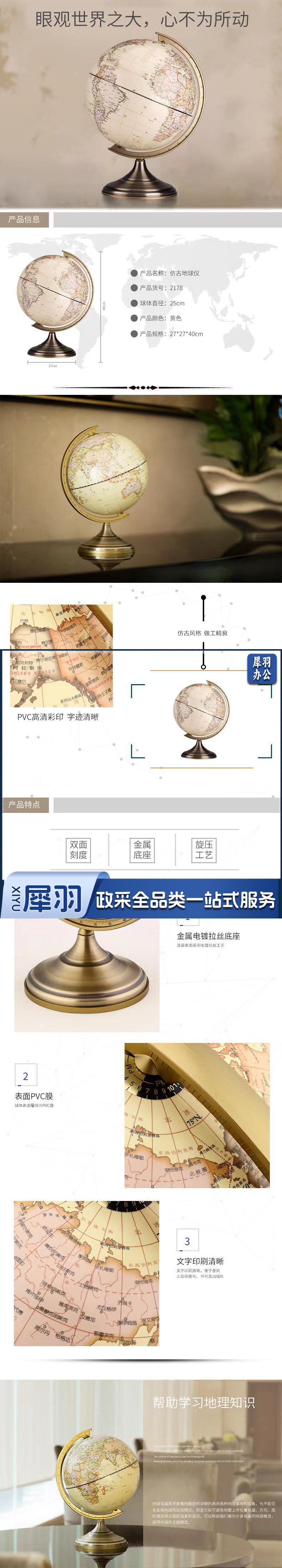 得力2178仿古金属地球仪25cm(黄)(台) .
