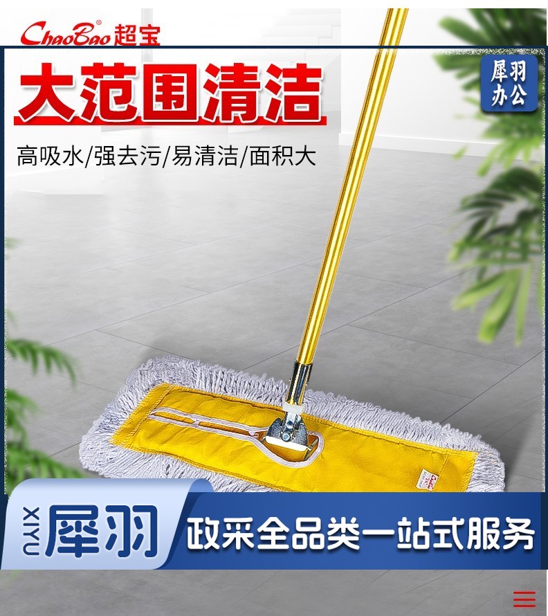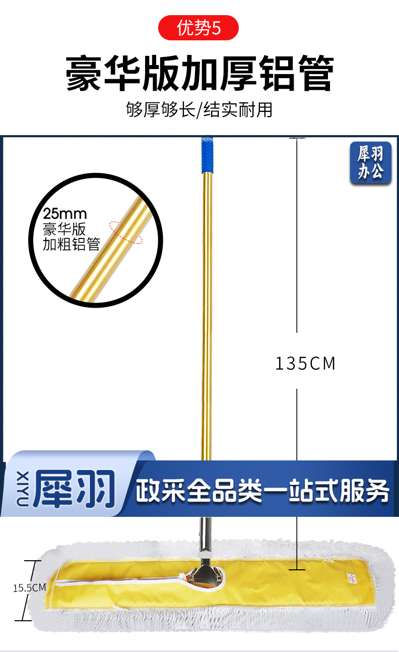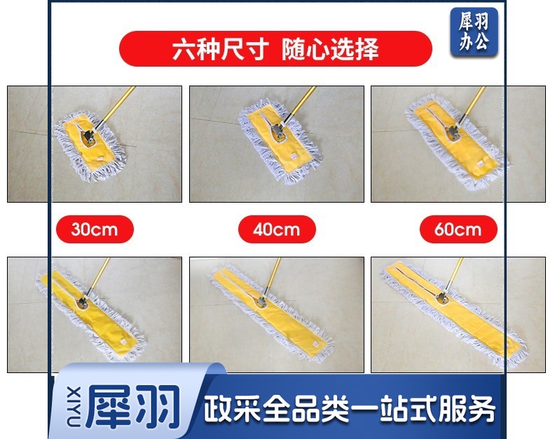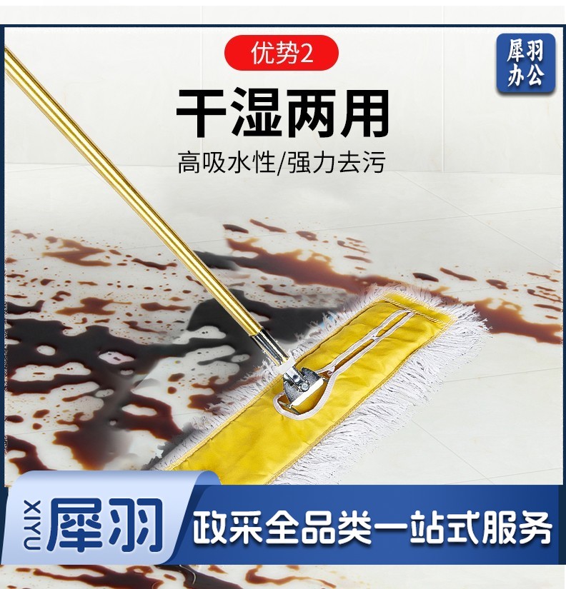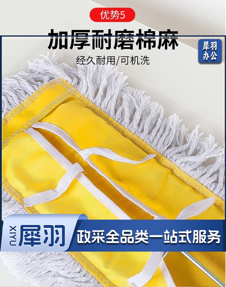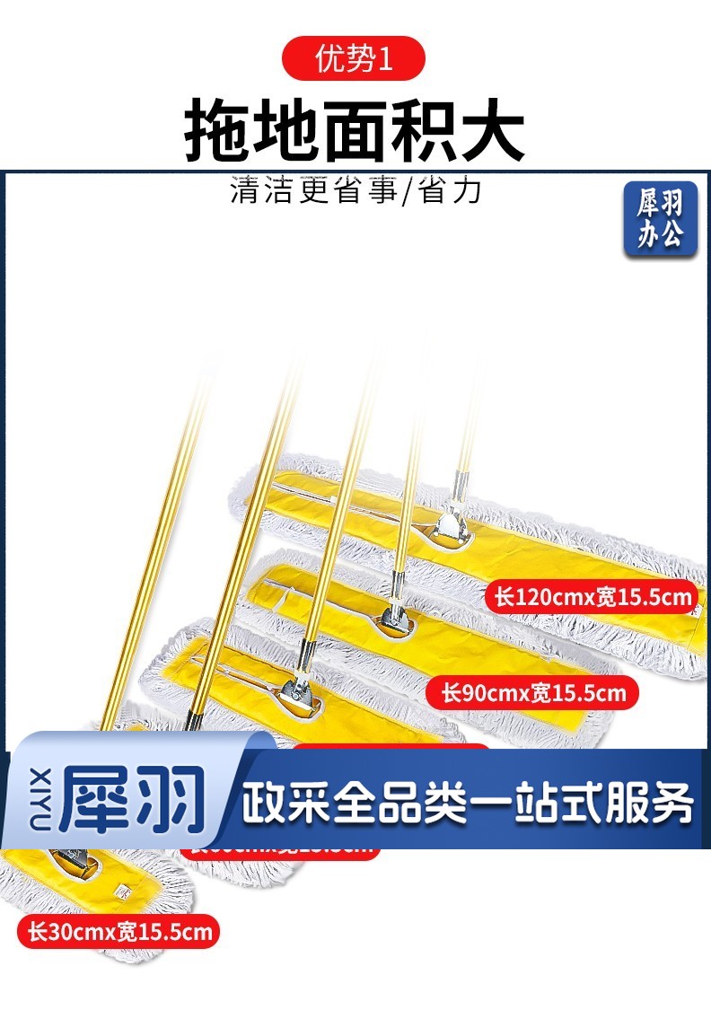 110cm商用平板拖把大码尘推酒店工厂瓷砖地板加厚加长棉线排拖推 黄色110cm整套