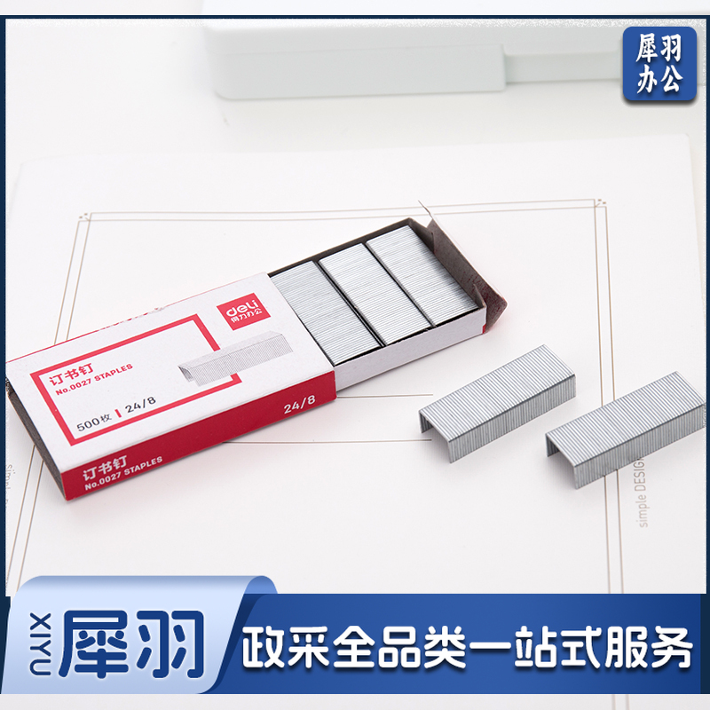 得力(deli)0027 24/8加厚订书钉/订书针 500枚一盒 10盒装
