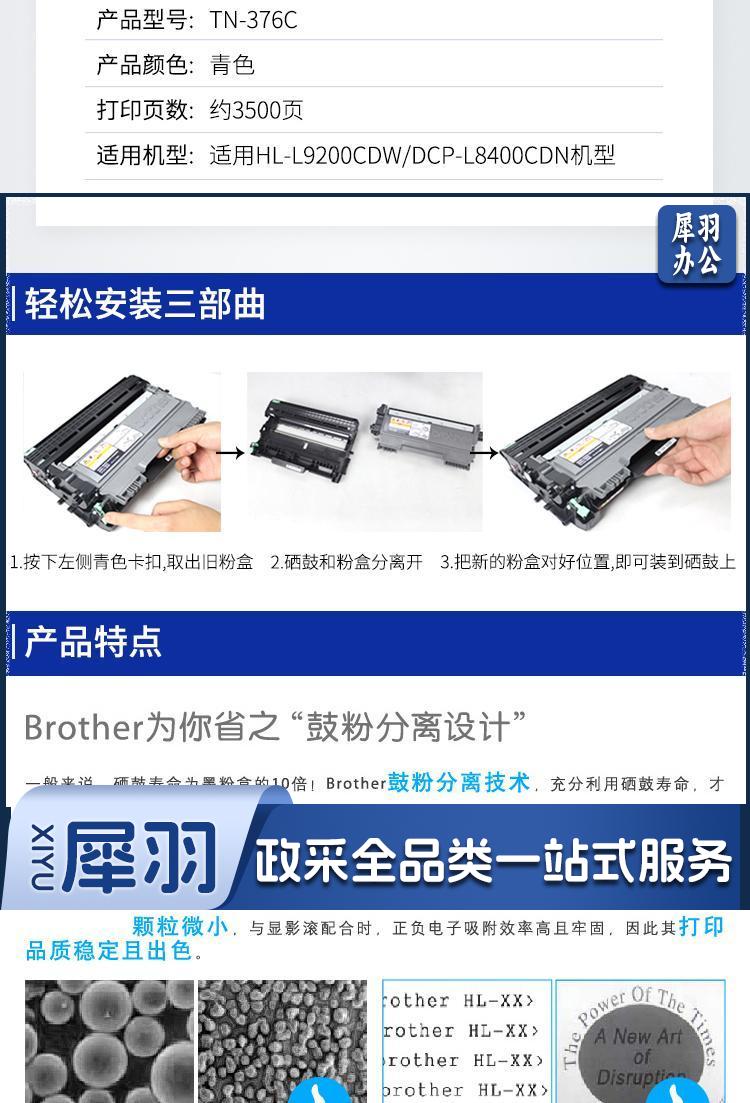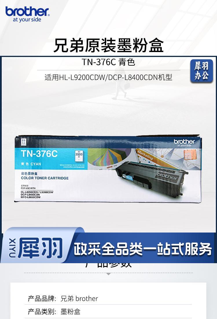 兄弟(brother)TN-376C青色墨盒 原装碳粉墨粉盒 (适用HL-L9200CDW/DCP-L8400CDN机型)