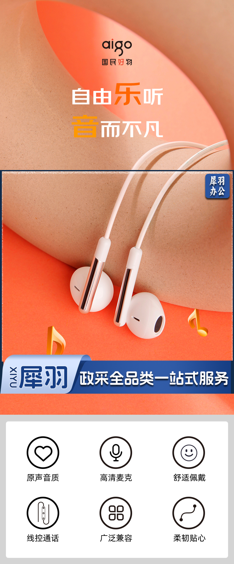 aigo 爱国者A220有线耳机半入耳式 重低音耳机耳麦带麦线控大动圈 通用手机电脑华为苹果适用耳机