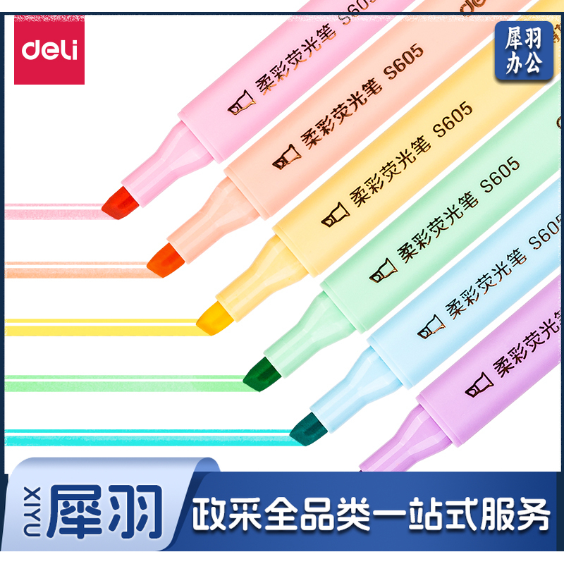 得力(deli)6色柔彩荧光笔套装 醒目标记笔 手帐可用水性记号笔6支/盒 S605