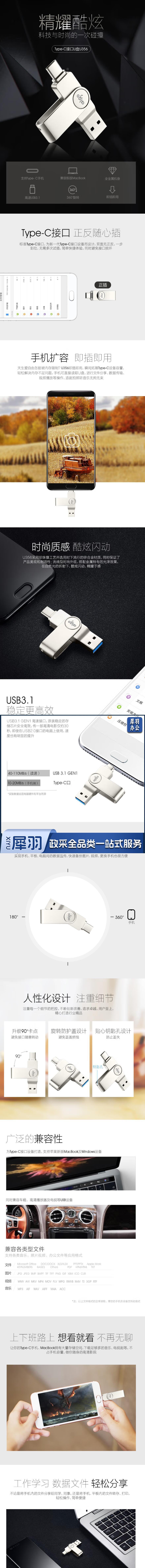 爱国者 U盘 U356 128GB (银) Type-C USB3.1 手机U盘 炫酷高速款 双接口手机电脑用