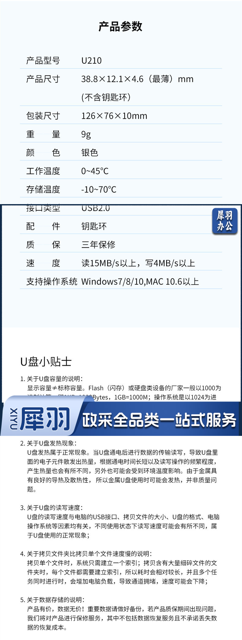 爱国者(aigo)8GB USB2.0 U盘 U210 金属U盘 优盘 车载U盘 银色 一体封装 防尘防水