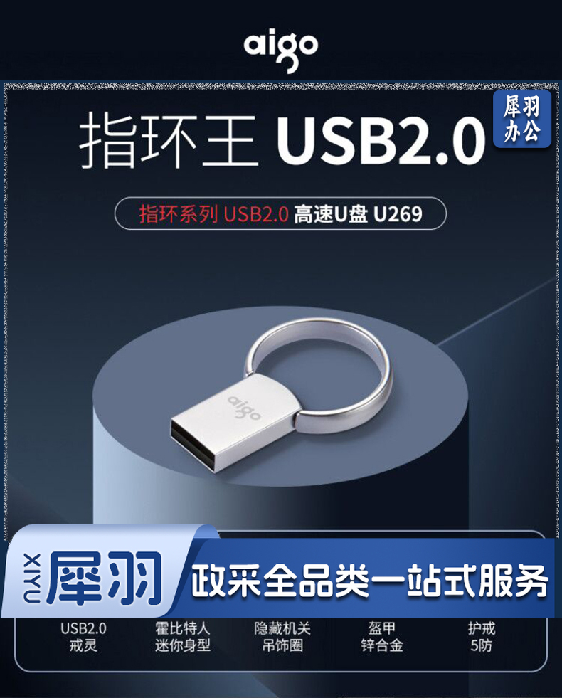 爱国者(aigo)16GB USB2.0 U盘 U269 银色 金属U盘