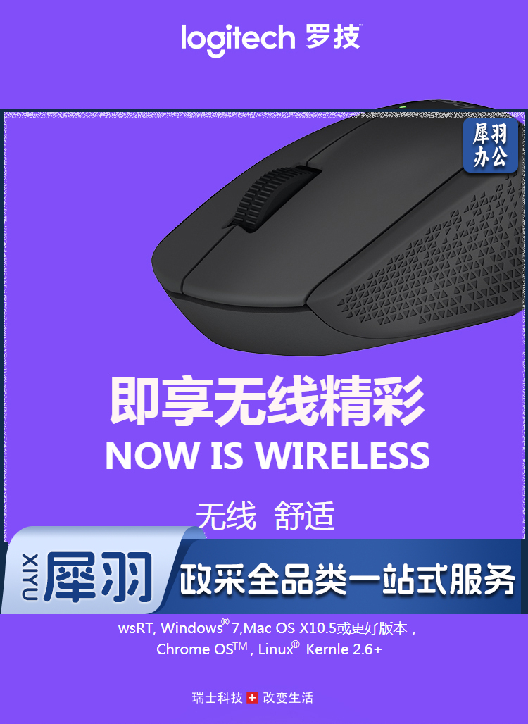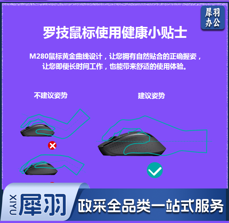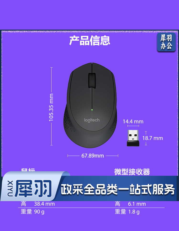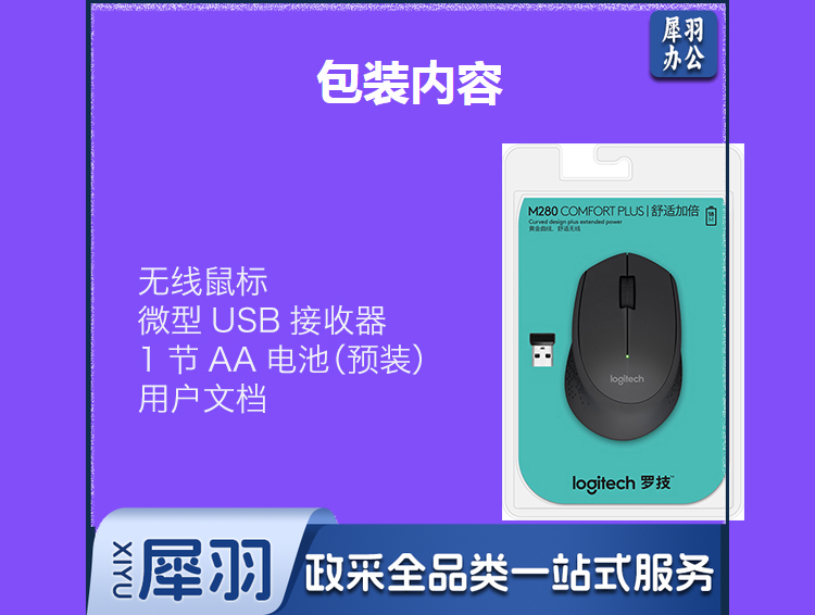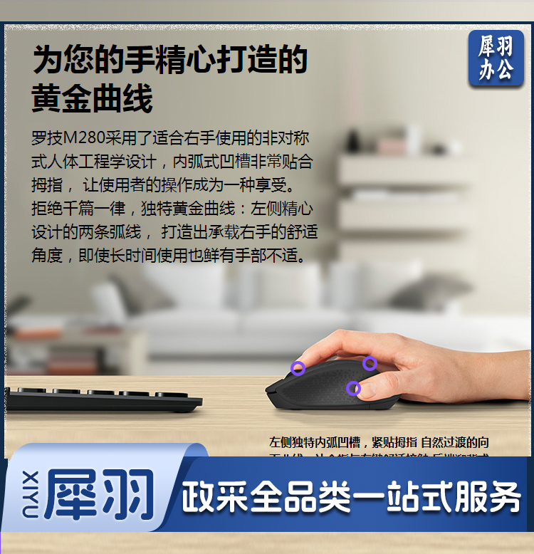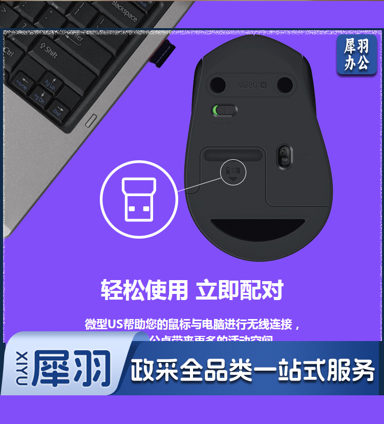 罗技(Logitech)M280(M275) 鼠标 无线鼠标 办公鼠标 右手鼠标 黑色 带无线2.4G接收器