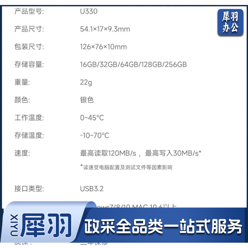 爱国者 U330 64GB USB3.0 U盘 金属旋转系列 单位:个