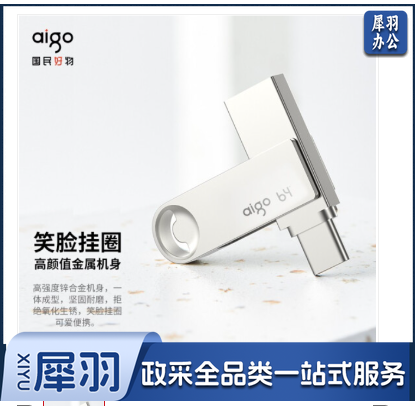 爱国者64GB Type-C USB3.2 手机U盘 U322 银色 读速180MB/s 双接口手机电脑用