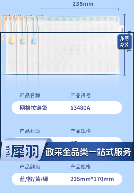 得力 A5 63480A透明网格拉链袋(混)