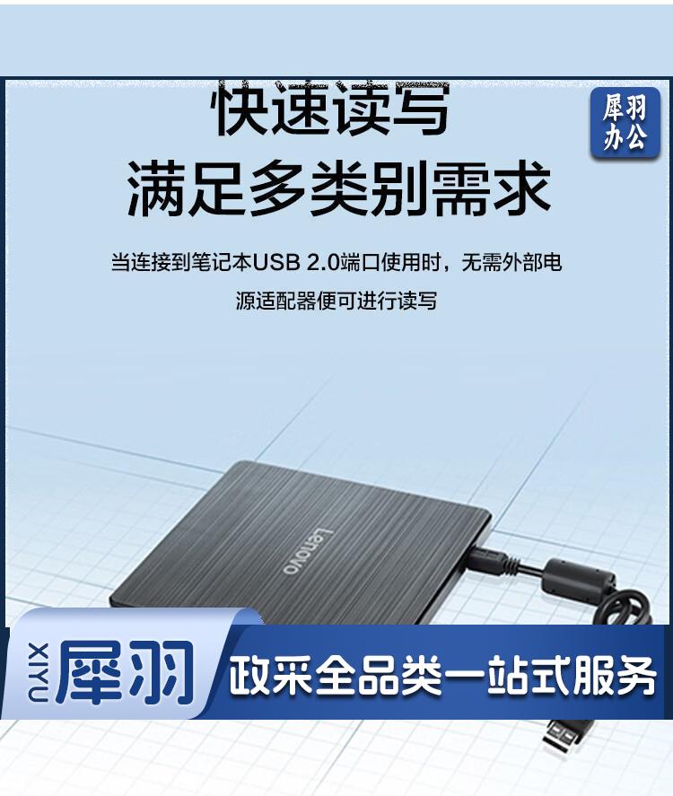 联想(Lenovo)笔记本电脑外置USB光驱 超薄移动CD机usb接口外接读取光盘 DVD刻录光驱
