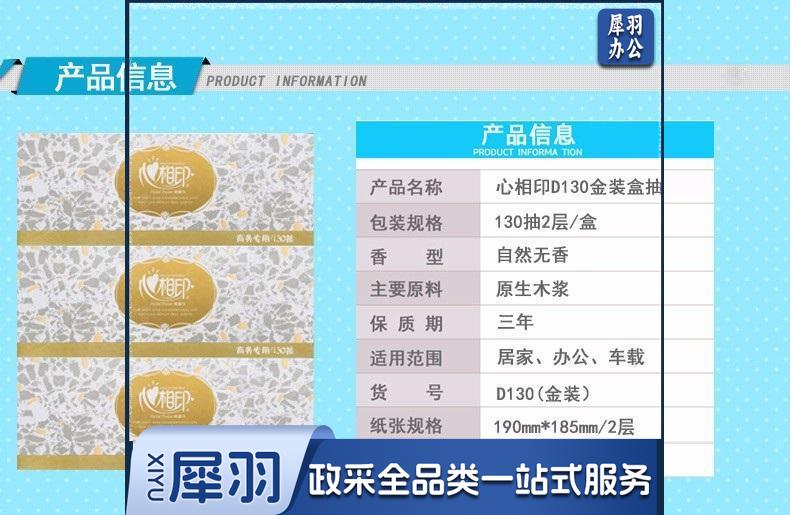 心相印(Mind Act Upon Mind) 双层面巾纸 商务硬盒抽纸 D130 130抽/盒 24盒装(5万盒可定制LOGO)