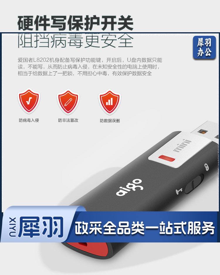 爱国者(aigo)16GB USB2.0 U盘 L8202写保护 黑色
