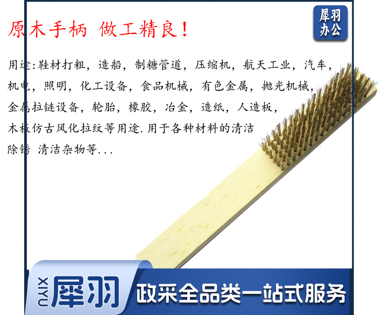 YG-T15mm 原木柄多用途铜丝刷 金属表面清洁刷 除漆除锈刷子 铜丝板刷