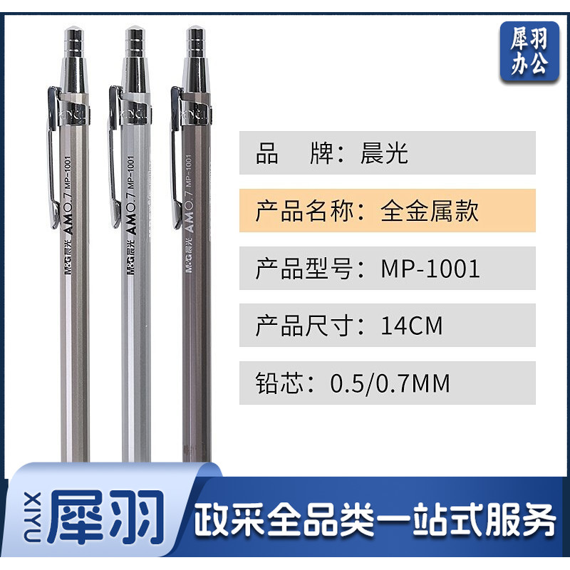 晨光铁杆自动铅笔MP1001黑0.7 单支装黑色