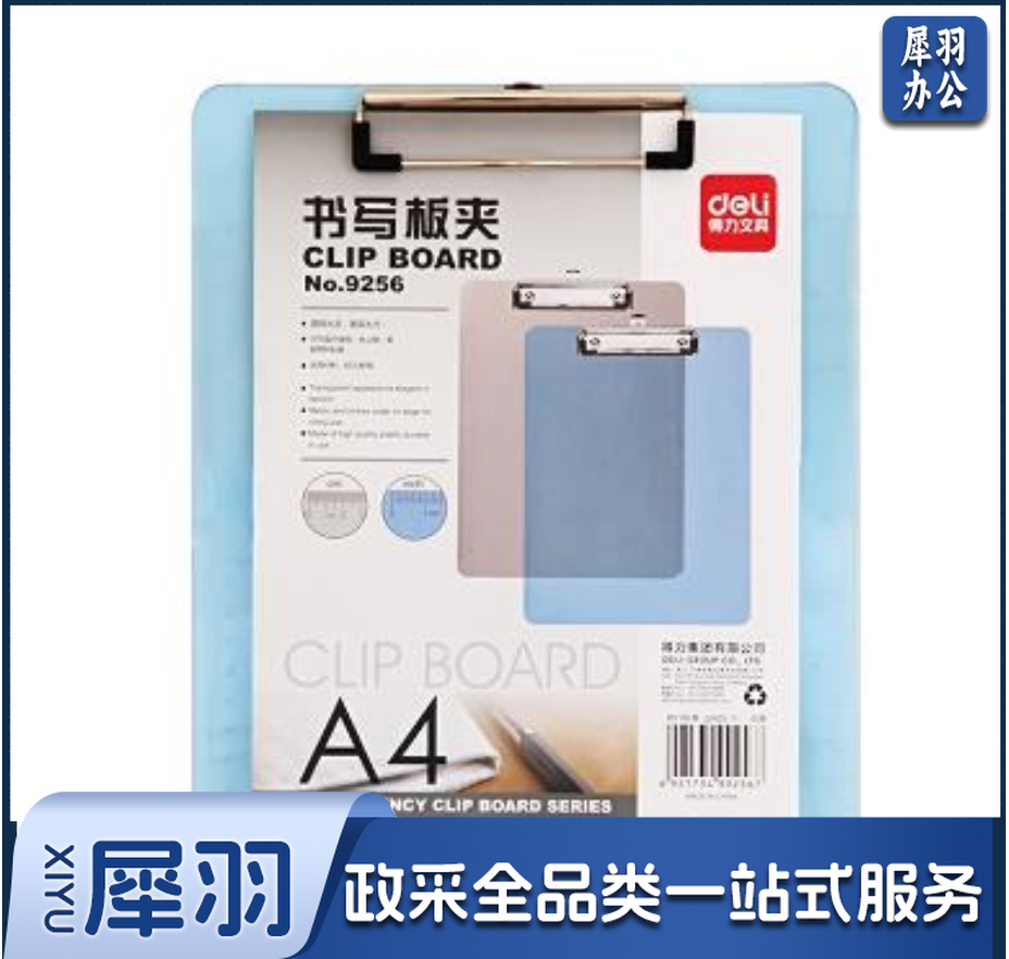 得力9256透明书写板夹 透明蓝 (单位:只)