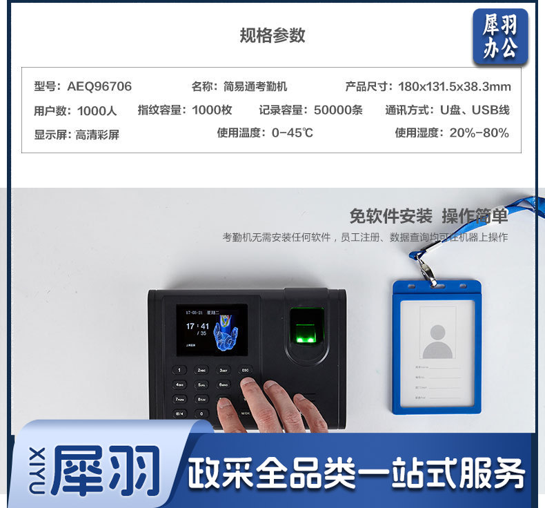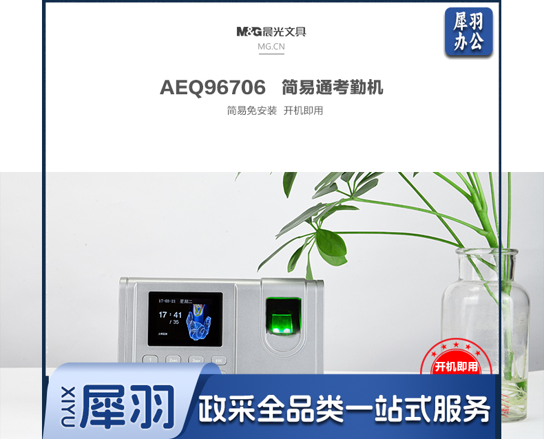 晨光(M&G)简易通指纹考勤机 考勤机 简易打卡机 指纹式签到机 AEQ96706 单个装+说明书+保修卡