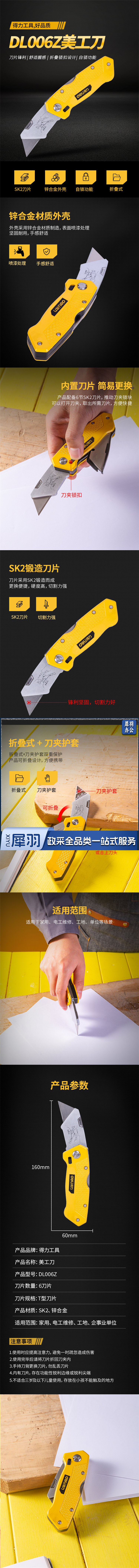 得力工具 DL006Z 锌合金折叠割刀(6刀片) 梯形刀片6刀片 SK5 (单位:把)