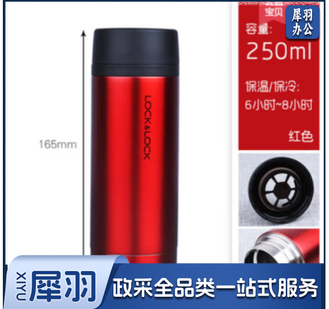 乐扣乐扣保温杯男女士学生不锈钢水杯便携杯子新宝石马克杯直身杯 250ml LHC4133RED