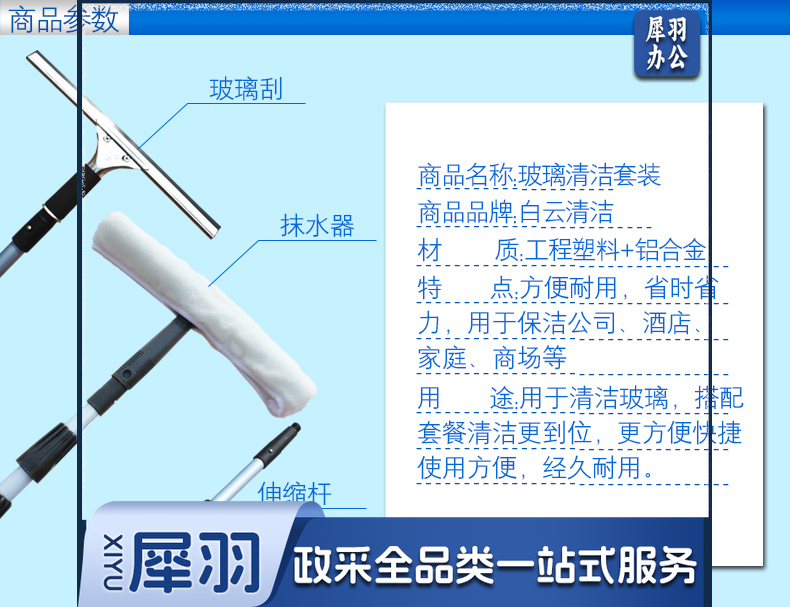 白云(BAIYUN)玻璃刮擦伸缩杆三件套擦窗器 2.4米伸缩杆套装