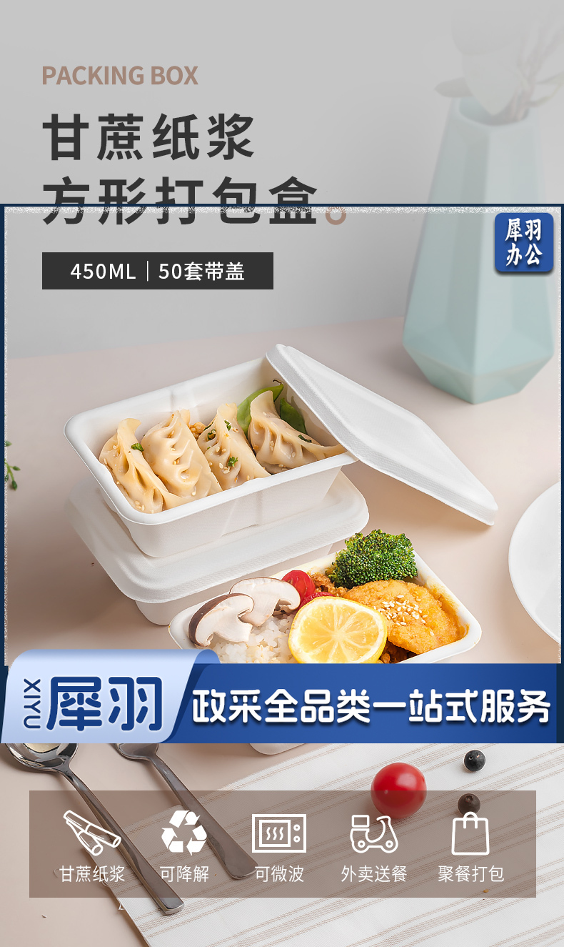 一次性可降解餐盒 450ML 520套/箱