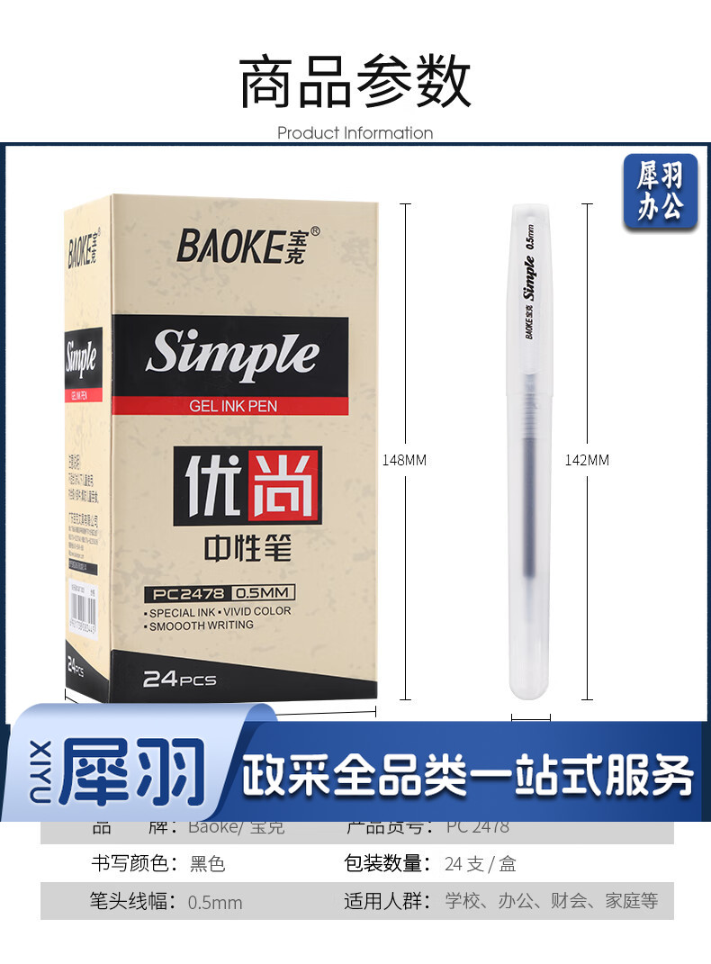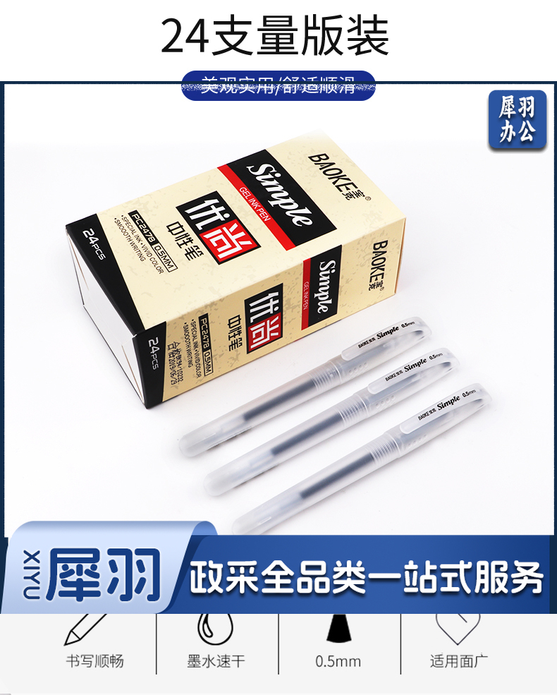 宝克(BAOKE)PC2478优尚中性笔办公签名笔水笔 0.5mm 黑色 24支/盒