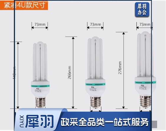 嘉世精选 佛山照明(FSL)T5大功率节能灯泡三基色U型日光灯E40螺口4U85W白光6500K紧凑款