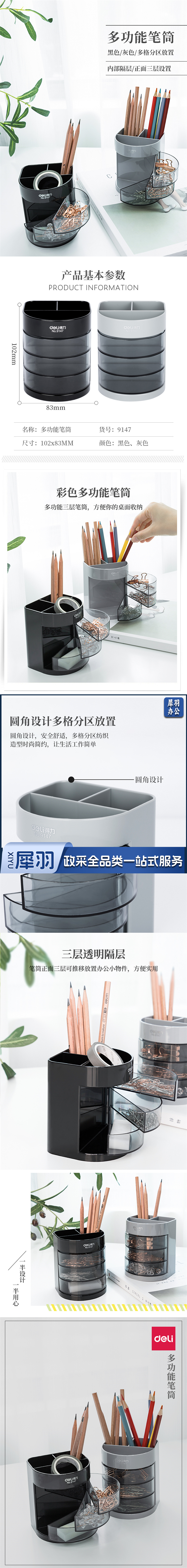 得力9147三层多功能笔筒(单位:盒)黑12只/盒