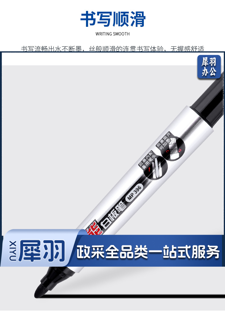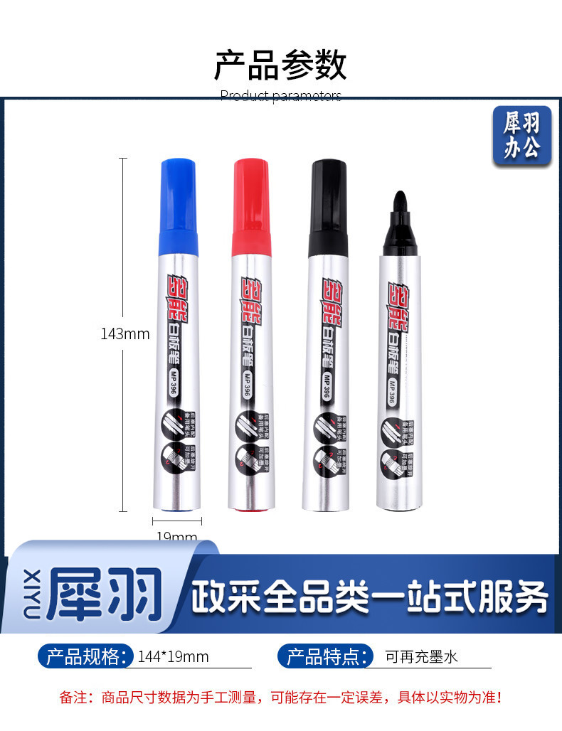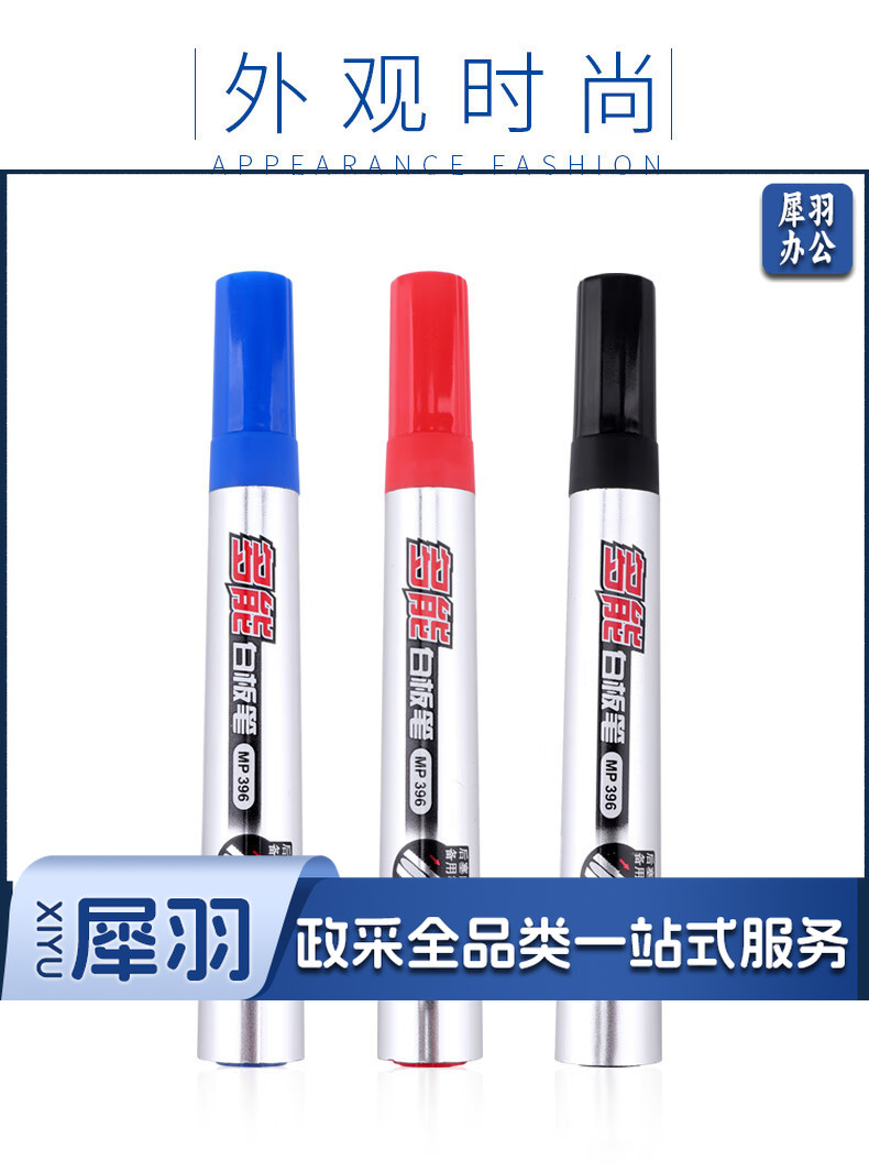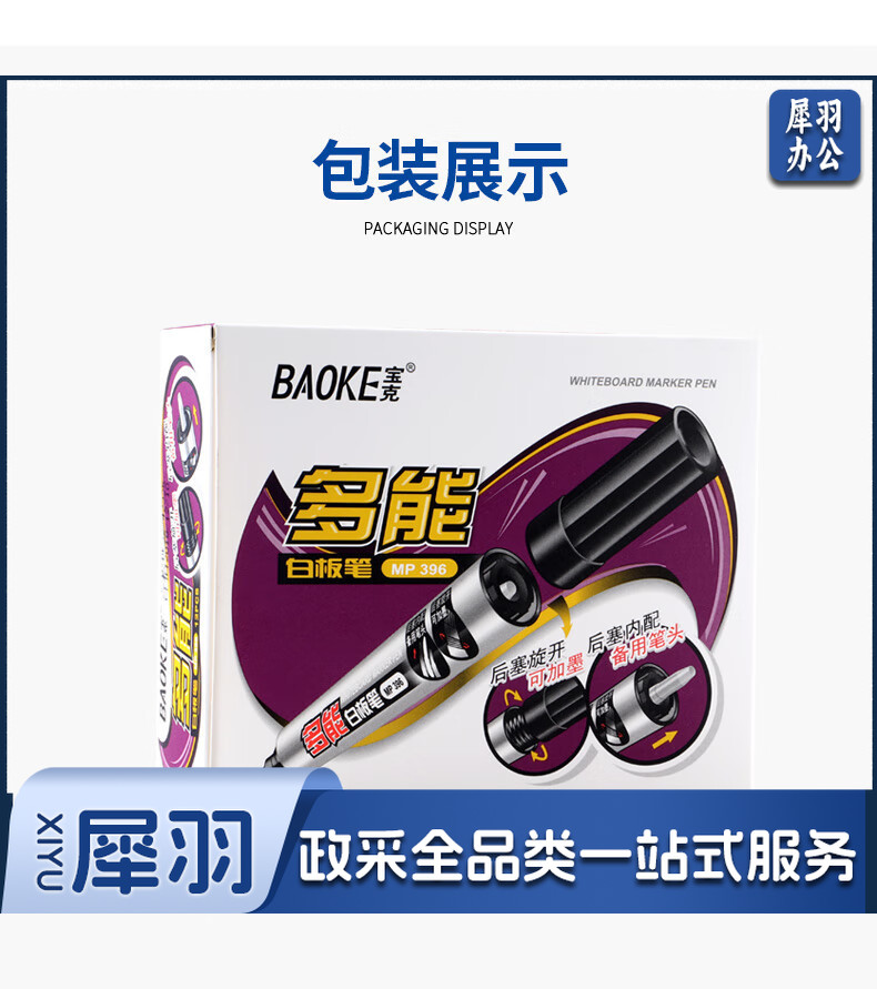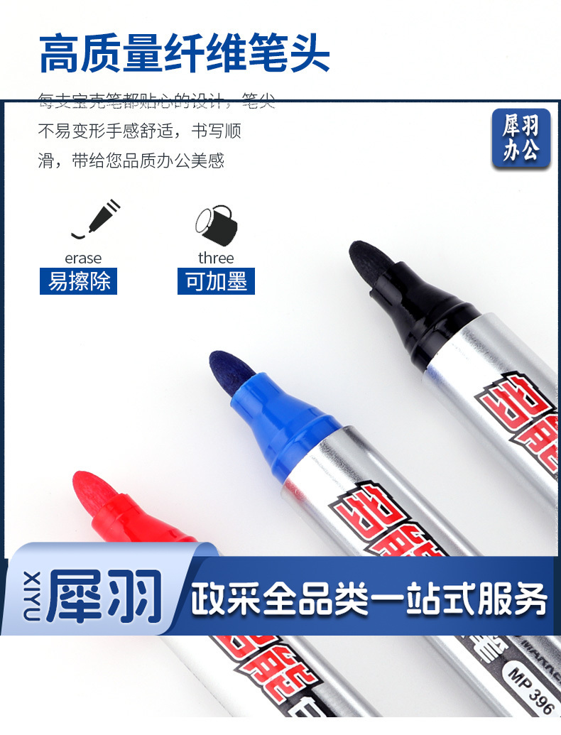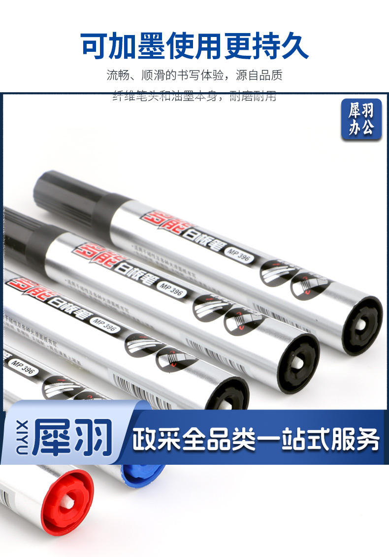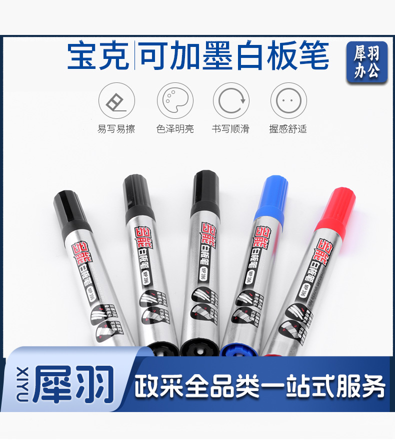 宝克(BAOKE)MP396 可加墨白板笔 可擦易擦自带备用笔头彩色商务办公会议儿童教学可擦笔涂鸦绘画笔文具 红色 12支/盒 实惠装
