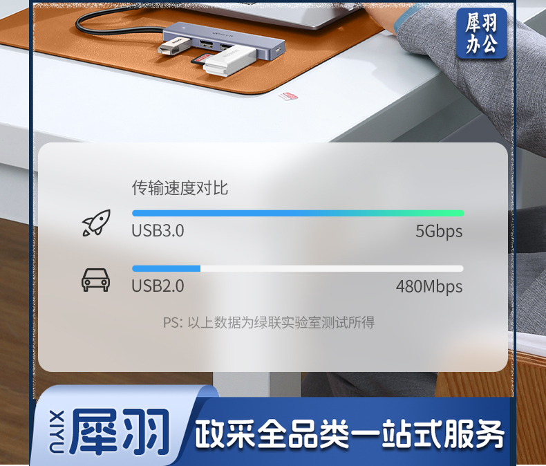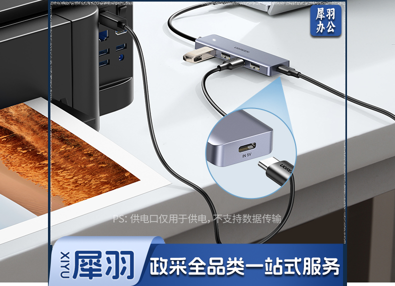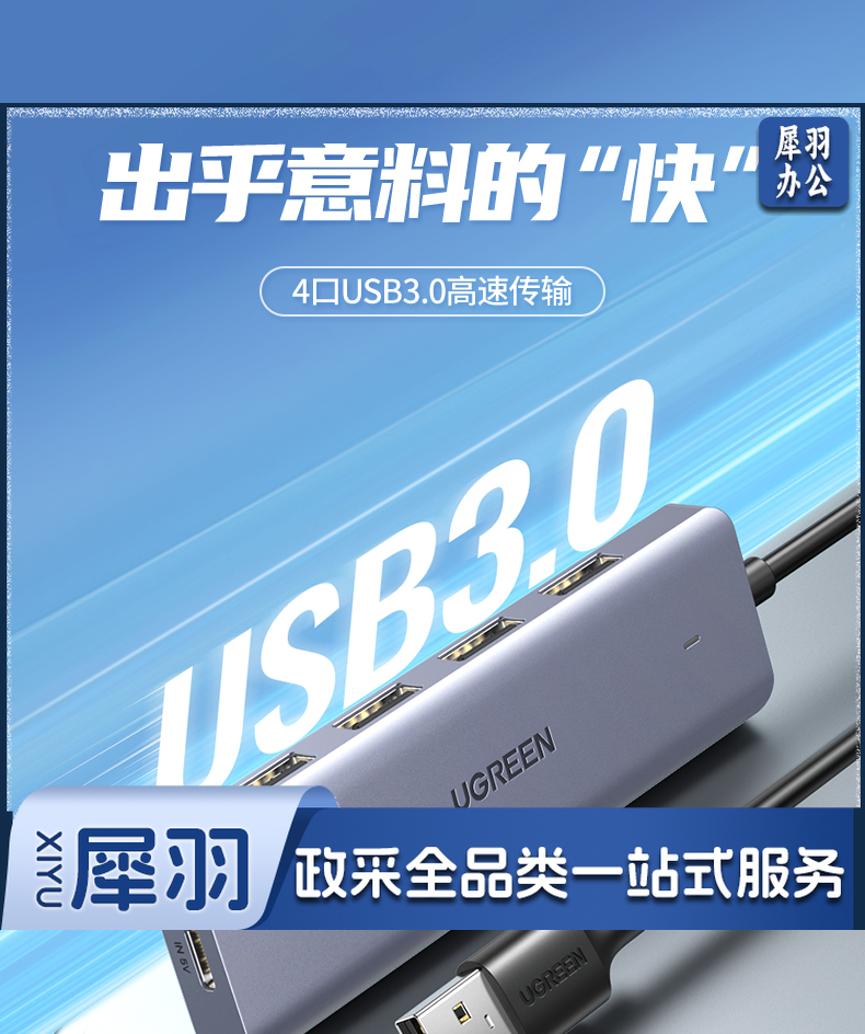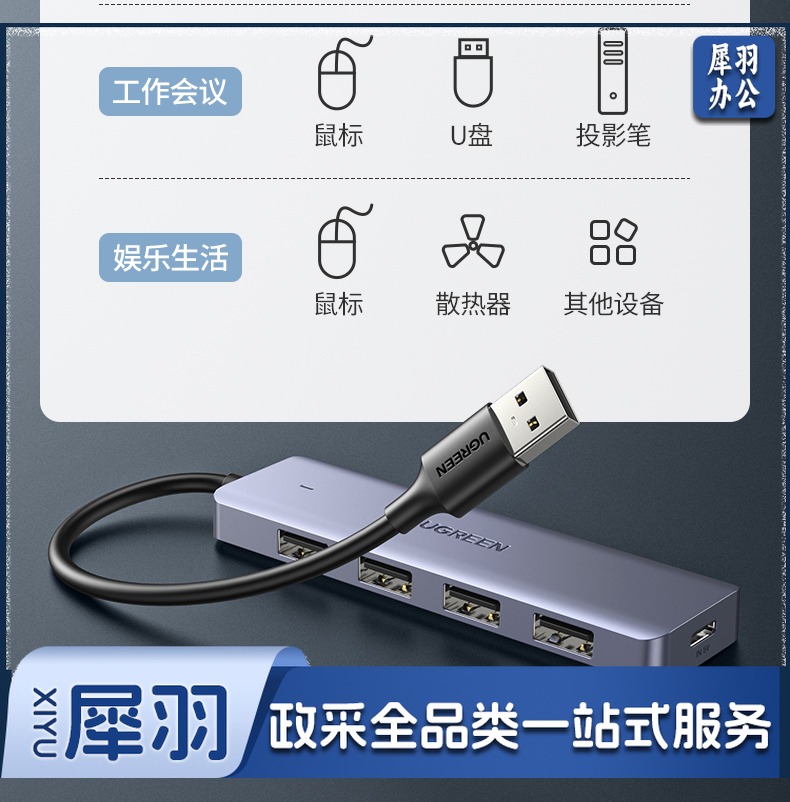 绿联(UGREEN)90879 USB3.0分线器扩展坞 高速4口集线器HUB拓展坞 笔记本电脑一拖多接口转换器转接头延长线带供电口 1.5米