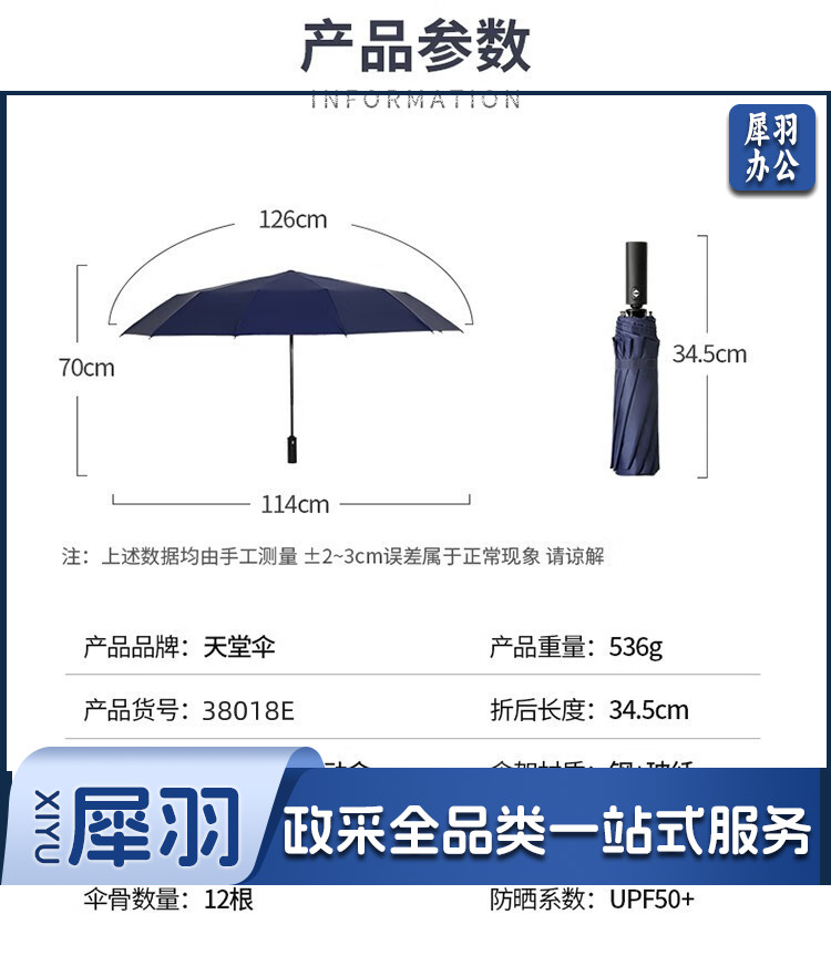 天堂伞雨伞全自动一键开收纯色晴雨两用伞遮阳防晒男女黑胶防紫外线伞 1#乌木黑-12骨黑胶加大款