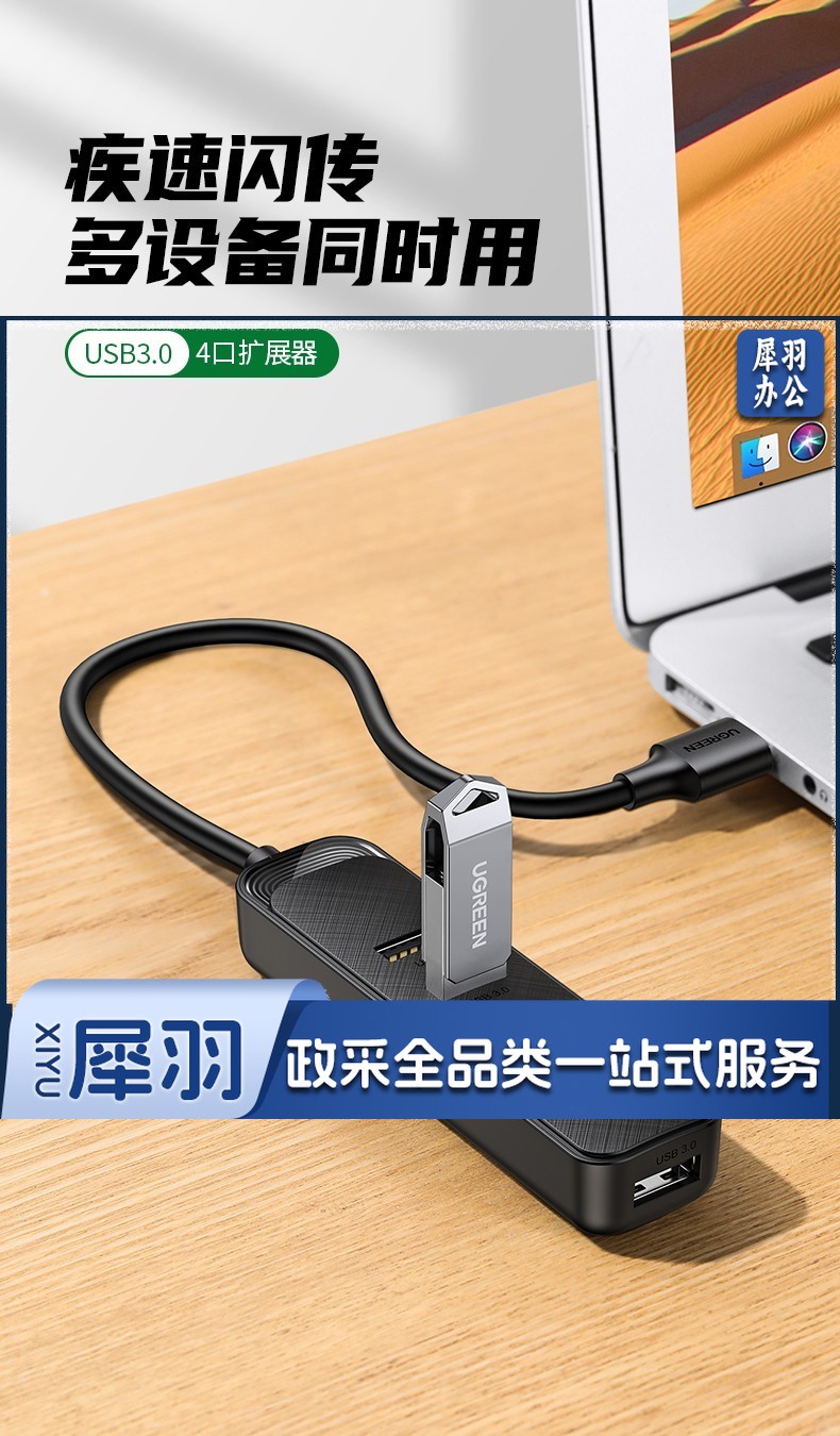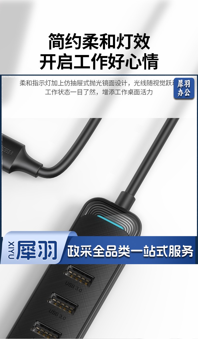 绿联 20485 USB分线器高速4口USB3.0延长线多口拓展坞HUB集线器笔记本电脑USB扩展坞转换器 延长线 0.25米 单位:个