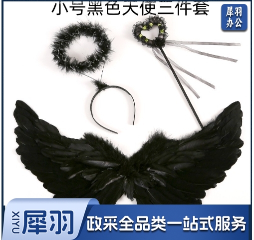 羽毛翅膀天使道具舞台表演儿童模仿走秀演出圣诞节日装饰三件套(小号)