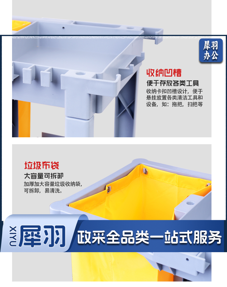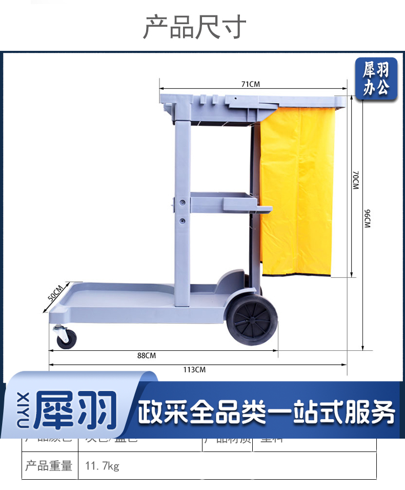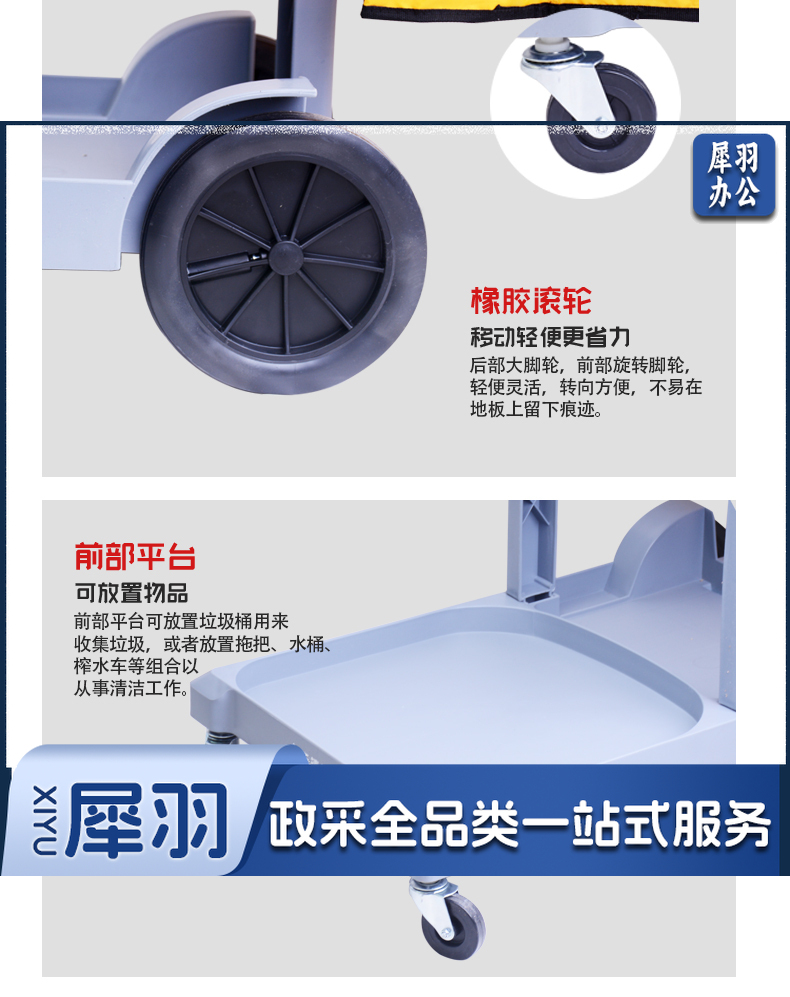 白云清洁(baiyun cleaning)AF08170A 酒店服务推车收餐车保洁车手推车多功能保洁工具杂物车 灰色带盖