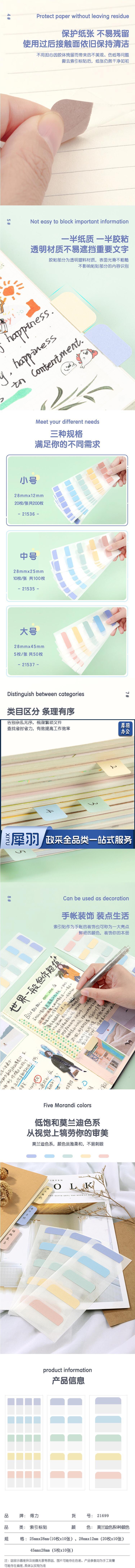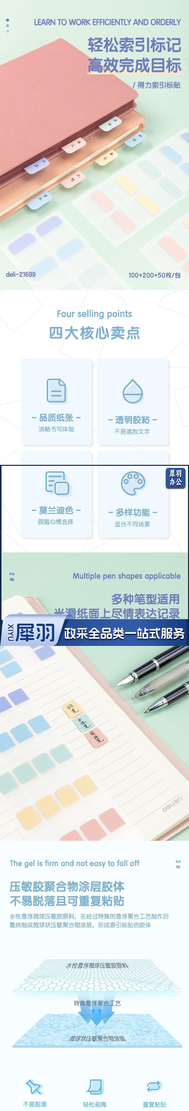 得力(deli)350枚多规格索引标签贴纸 莫兰迪色荧光膜 半透明 21699开学礼物