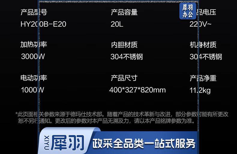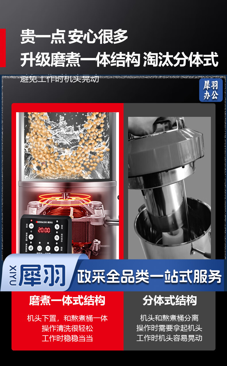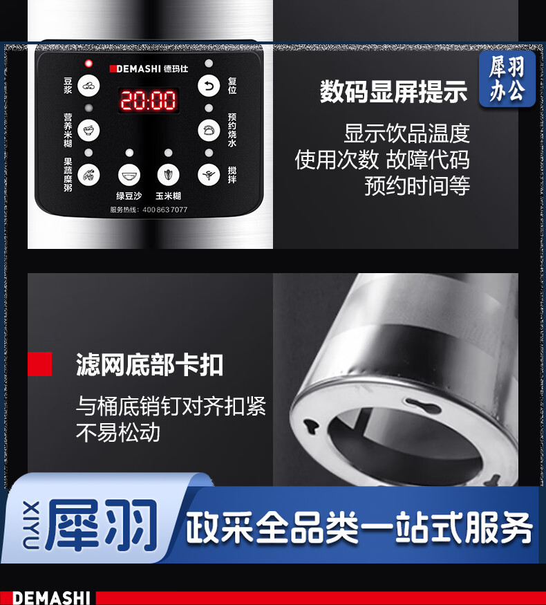 德玛仕(DEMASHI)豆浆机商用早餐店单位用全自动破壁机 HY200B-E20(220V)