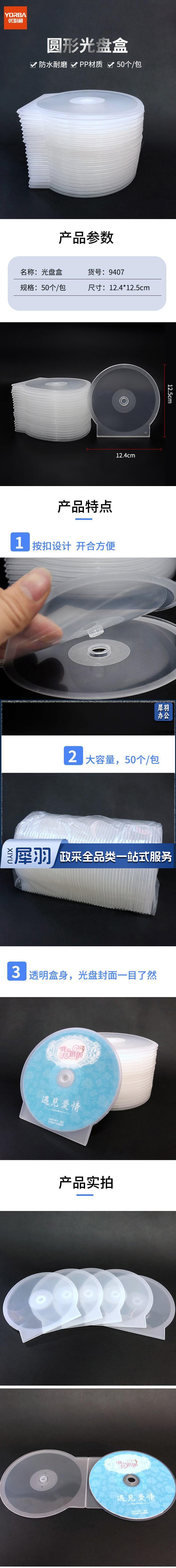 优必利 圆形光盘盒 刻录碟片收纳盒 透明塑料光盘袋 光盘套cd dvd光碟收纳盒子 50个/包(整包销售) 9407