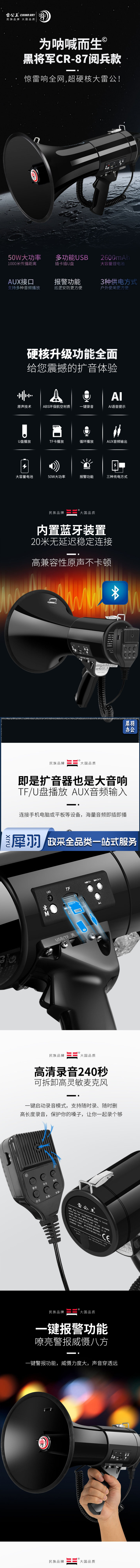 雷公王CR-87大功率手持喊话器喇叭扩音器扬声器录音240秒大功率宣传USB插卡高音喇叭