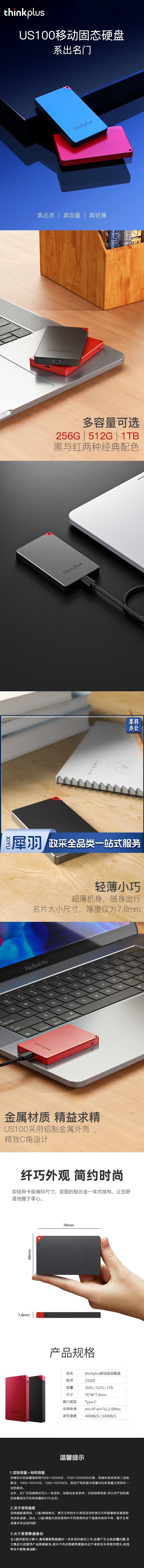 联想 thinkplus 【1T】移动固态硬盘 USB3.2高速PSSD移动硬盘 type-C 小巧便携读取400MB/S US100黑色 jcyd-230510115945