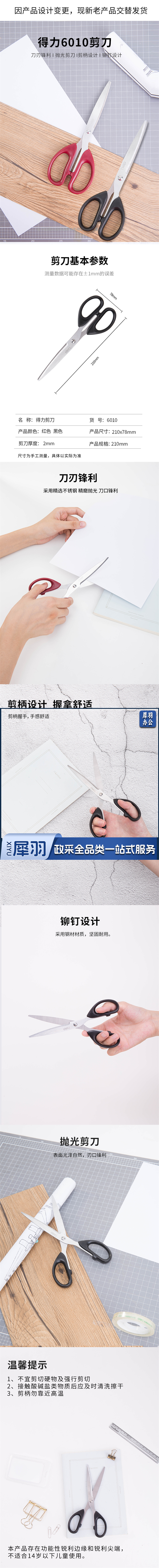 得力6010剪刀210*78mm(黑)(单位:把)