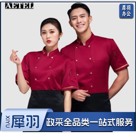 AETEL 厨师工作服男短袖透气高档酒店餐厅厨师中国风夏季后厨房衣服定制logo QJ领口美食 红色短袖单上衣 【M-4XL码 下单请咨询】