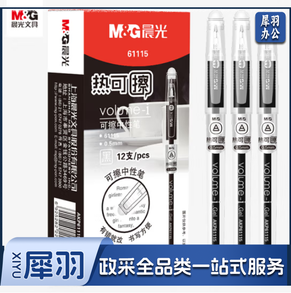 晨光0.5mm黑色中性笔 热可擦子弹头签字笔 拔盖水笔 12支/盒AKP61115晨光0.5mm黑色中性笔 热可擦子弹头签字笔 拔盖水笔 12支/盒AKP61115(DBJ202309131028415)