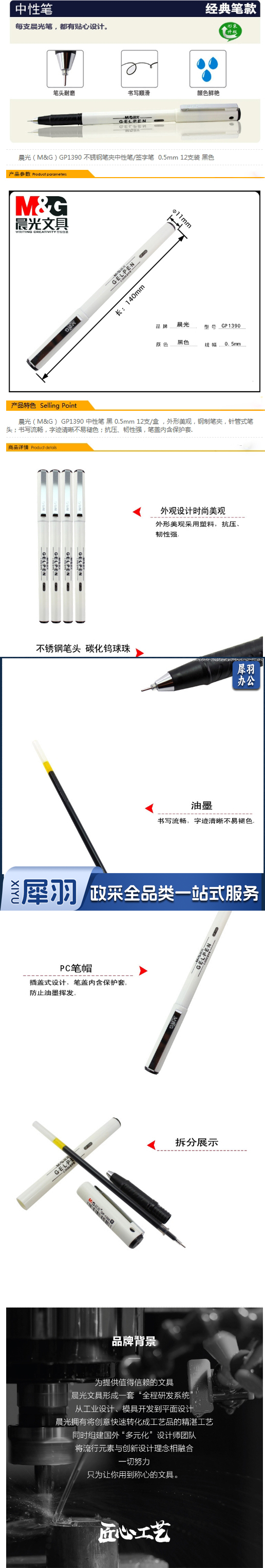 晨光 GP1390 签字笔 0.5mm 12支/盒(黑色)(单位 支)