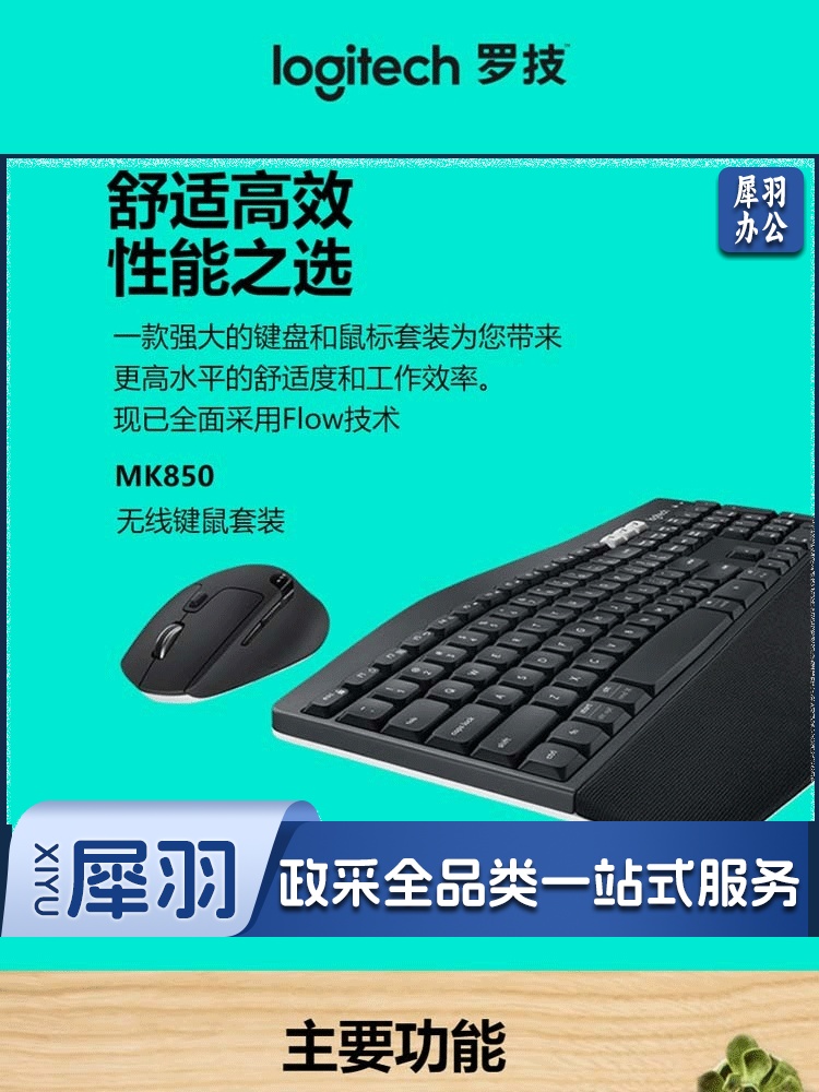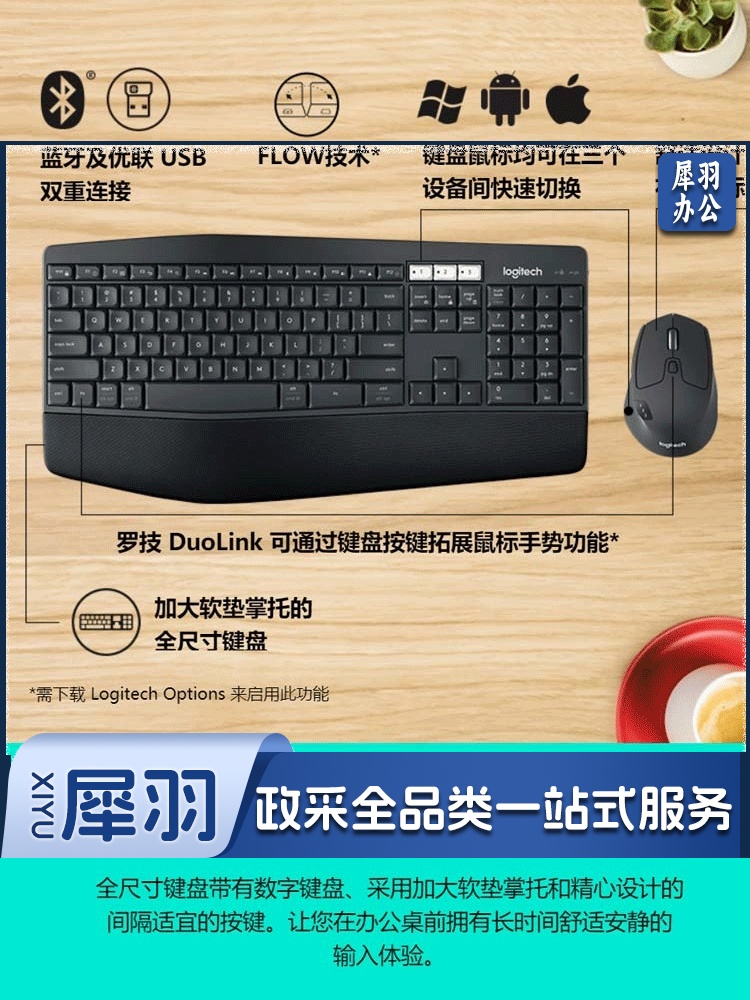 罗技(Logitech)MK850 键鼠套装 无线蓝牙键鼠套装 办公键鼠套装 全尺寸 黑色 带无线2.4G接收器
