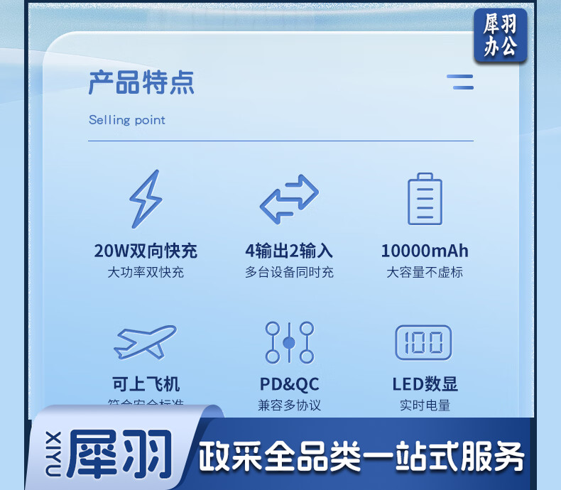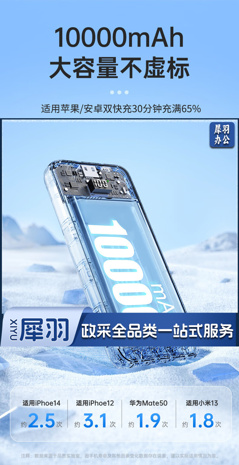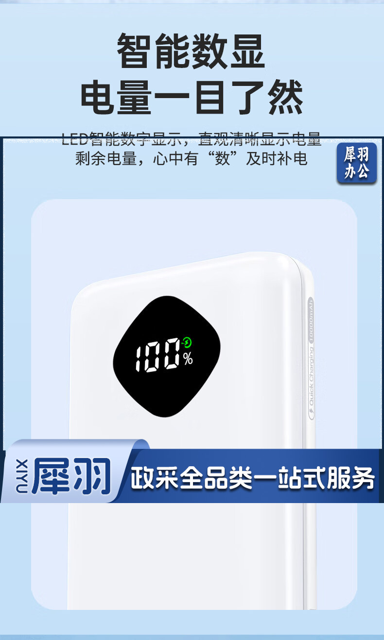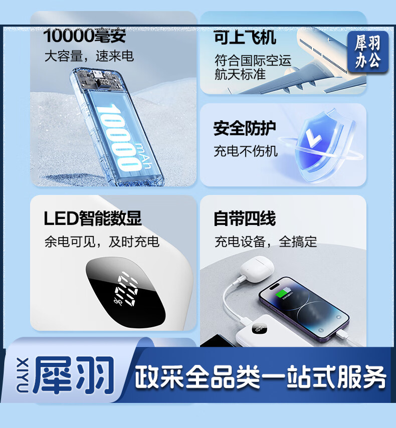品胜 充电宝自带四线20W快充大容量可上飞机轻薄便携小巧移动电源10000mAh适用苹果华为小米手机 简约白【自带四线 双向快充】