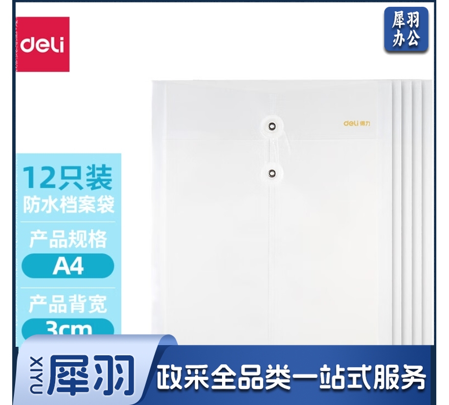 得力(deli)12个装透明文件袋防水档案袋 5511A