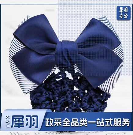 头花女职业盘发网兜 条纹二结蓝